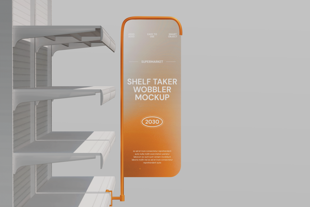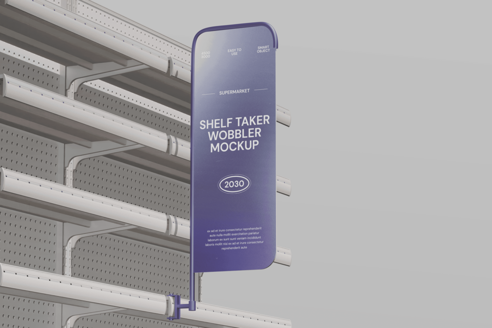 Promotional designs become more vibrant and ready to attract attention in stores with this vertical shelf wobbler mockup.